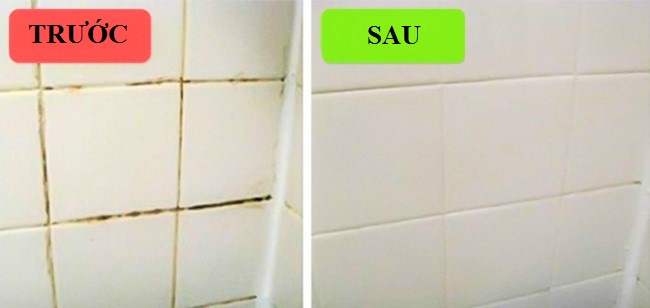 Dùng 1 phần dấm hoặc thuốc tẩy, pha lẫn 1 phần nước để làm sạch những vết ẩm mốc bám lâu ngày trên gạch lát. Đảm bảo các vết cáu bẩn đen kịt trên viền gạch sẽ mau chóng biến mất.