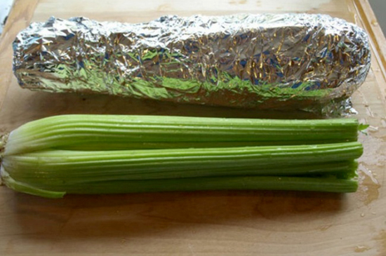 15. Bọc cần tây trong giấy bạc: Cần tây sẽ kéo dài thời gian sử dụng hơn nếu được bọc trong giấy bạc và để trong ngăn mát tủ lạnh. Nếu bảo quản trong túi nilon, e rằng cần tây sẽ bị mất đi phần nào hương vị ban đầu.