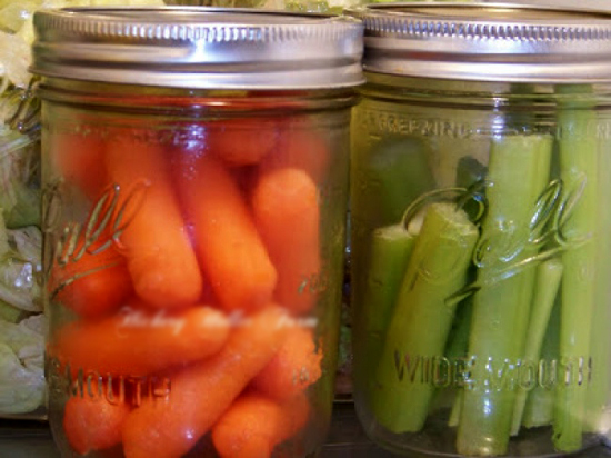 16. Cà rốt và cần tây trong lọ thủy tinh: Nếu cắt nhỏ và ngâm cà rốt và cần tây với nước trong các lọ thủy tinh riêng biệt, ta sẽ giúp hai loại rau củ này tươi lâu hơn đáng kể.