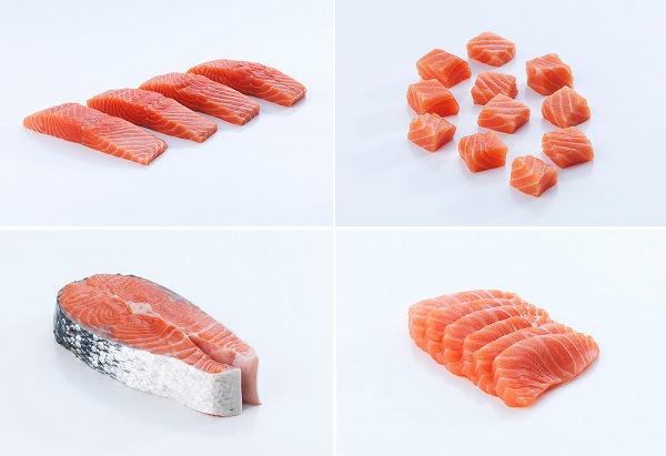 Các kiểu cắt thái cá hồi khác nhau. (Ảnh: Visscher Seafood)