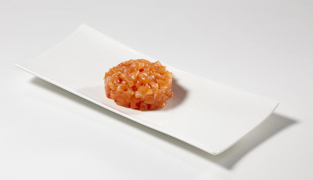 Cá hồi thái miếng vuông. (Ảnh: Visscher Seafood)