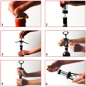 Các bước khui một chai rượu vang. (Ảnh: HaiNguyenThuc Blog)