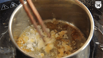 Bước 4: Khi đường tan hết và bắt đầu sủi bọt kín mặt nồi, cho 1-2 thìa cà phê hoà tan vào phần caramel rồi tắt bếp.