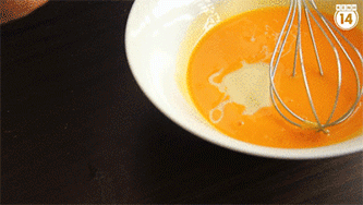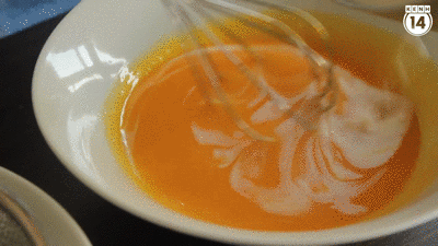 Chú ý: Tất cả các thao tác đánh cần phải thật nhẹ nhàng để trứng không bị nổi bọt.