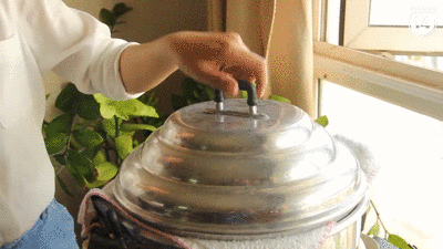 Bước 10: Hấp bánh trong 15 phút. Sau đó lấy nắp ra, dùng khăn lau sạch phần hơi nước bám ở bên trong nồi rồi đậy vào hấp tiếp 15 phút nữa.