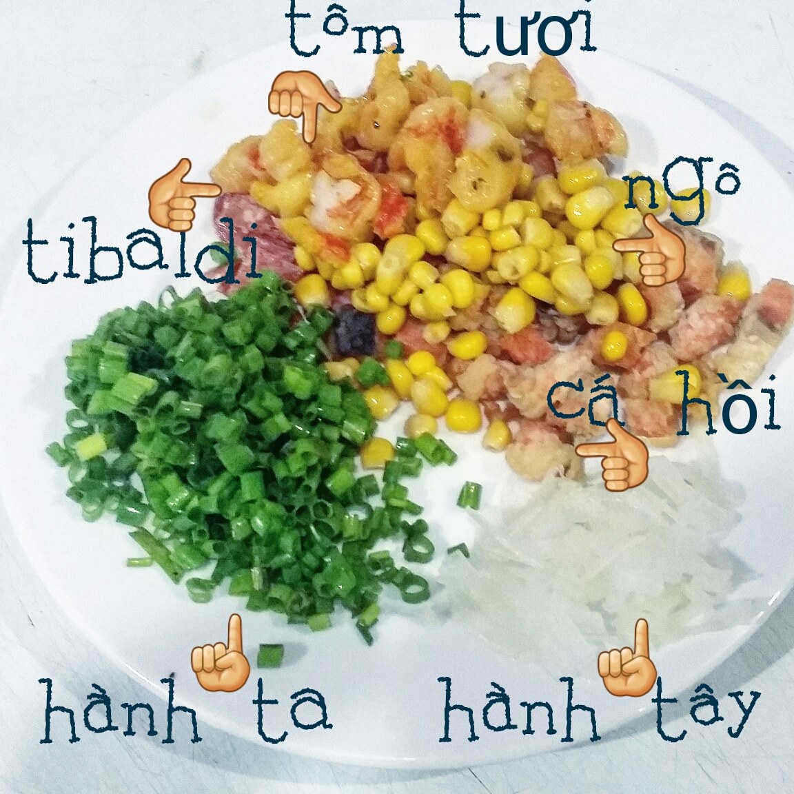Nguyên liệu để chế biến món cơm rang cá hồi Na Uy. (Ảnh: H3Q Miki)