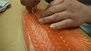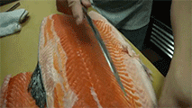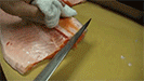 Cắt chéo xuống từ dưới đầu cá hồi đến xương cổ.
