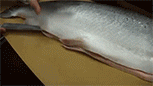 Lọc xương bụng bằng cách dọc dao bên dưới phần xương. Sau đó cắt bỏ vây và xương ở phần riềm cá.