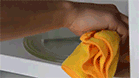 Sau khi lấy bát nước chanh ra, hãy dùng khăn ẩm lau quanh lò. Các vết cáu bẩn sẽ tự động biến mất mà bạn không phải tốn công kỳ cọ, lau chùi nhiều. (Ảnh: Hacking Life)