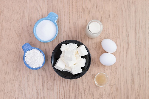 Bước 1: Dùng máy đánh trứng đánh đều Cream Cheese, đường, trứng gà và nước cốt chanh trong một cái âu.