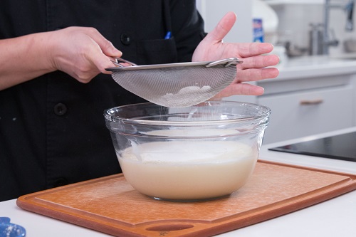 Bước 3: Rây bột vào âu rồi trộn đều.