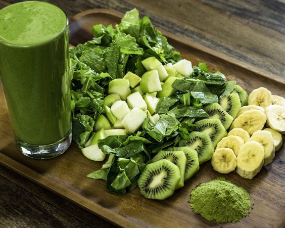 Sinh tố rau chân vịt non trộn với rau cải xoăn non, chuối, kiwi, táo, đường thốt nốt và bột trà xanh Matcha Nhật Bản. Tại nhà, bạn có thể tự làm sinh tố rau chân vịt non chỉ với chuối hay quả bơ. (Ảnh: Pinterest)