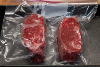 Bước 3: Sau đó, lấy thịt ra khỏi ngăn đá. Theo ví dụ của JustOneCookbook.com, mỗi miếng thịt nặng khoảng 450g nên thời gian cần phải để ngăn đá là 1 tiếng rưỡi.