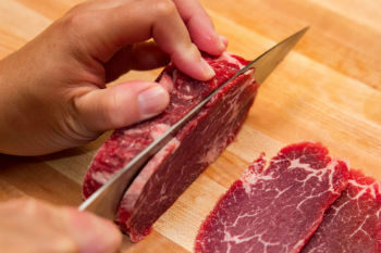 (ribeye, top sirloin, tenderloin, strip loin, pork loin or any cut of meat that is slightly more lean and a bit more firm).