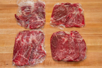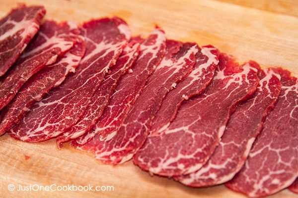 Thịt bò sau khi đã được thái mỏng như giấy. (Ảnh: JustOneCookbook.com)